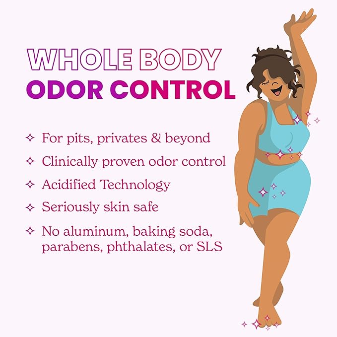- EVERYTHING YOU NEED TO SMELL BETTER EVERYWHERE - Odor control for pits, privates and beyond—think feet, underboob, tummy folds, butt cracks or anywhere else you have odor but wish you didn’t.