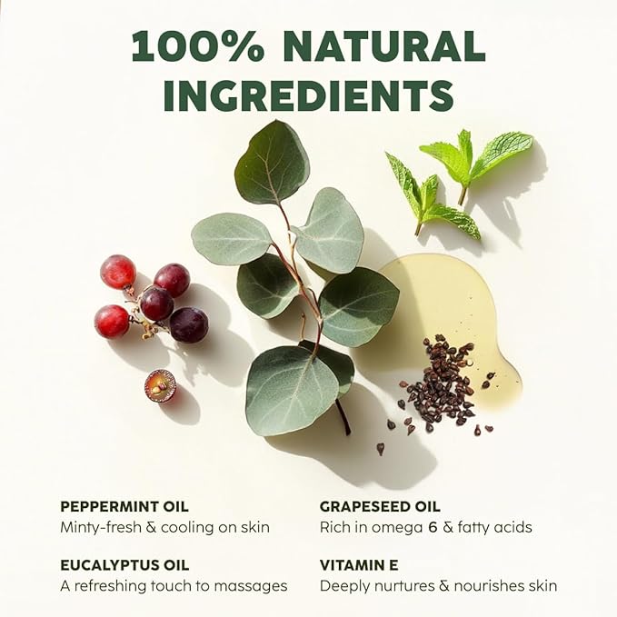 - Enjoy our massage oils natural cool, comforting experience. Our Soothe Massage Oil is made with a curated blend of vitamin E oil, peppermint oil, eucalyptus essential oil, and grapeseed oil. Refresh and soothe tired bodies with aromatic ease.