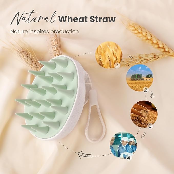 - Wheat Straw Scalp Scrubber: AIMIKE hair scalp massager shampoo brush is made of natural wheat straw with soft silicone bristles. Unlike the traditional hair shampoo brush, it is natural protector for your scalp and planet