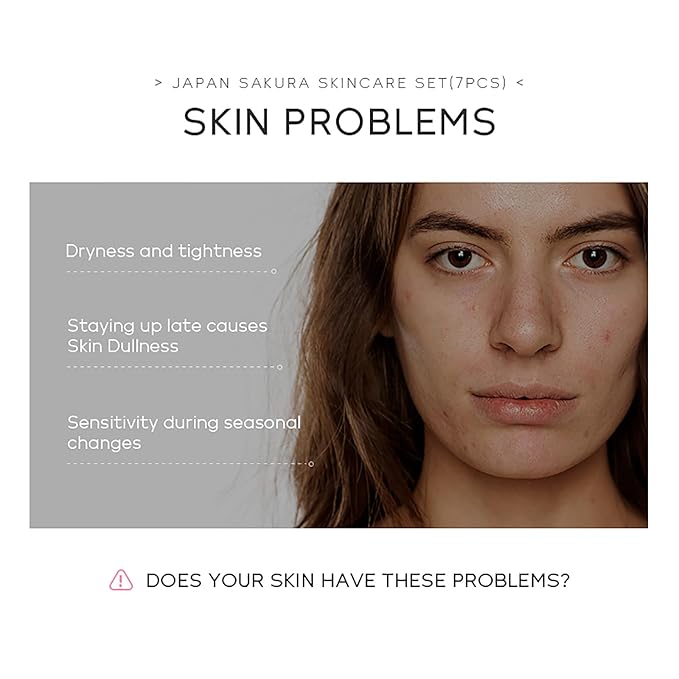 Skin Care Set JAPAN SAKURA Beauty Gift Sets Skin Care Kit with Cleanser, Toner, Lotion, Serum, Eye Cream, Face Cream, Make up Primer Travel Kit for Women Wife Mom 7pcs