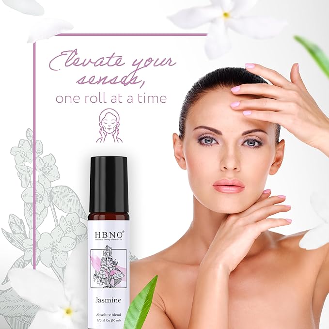 HBNO Jasmine Grandiflorum Oil Roll-On - 1/3 oz (10 ml) Travel Size - Jasmine and Mct - Perfect for Traveling, Aromatherapy, Massage, perfumes, moisturizer