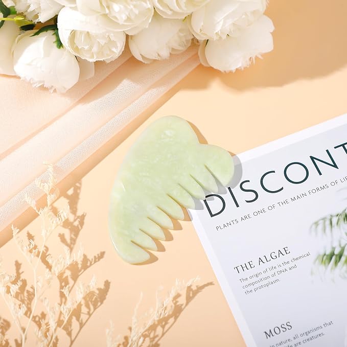 Geiserailie 2 Pieces Jade Combs Massage Stone Hair Gua Sha Scraping Scalp Comb Facial Massage Tool Multifunctional Handheld Head Tools Head Caring Therapy Mother's Day Gift(Heart Style)