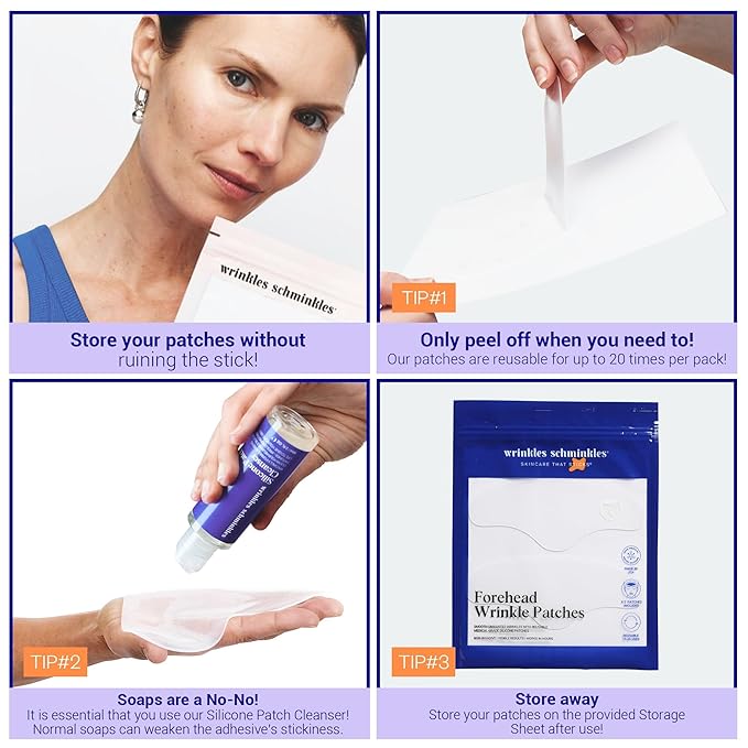 - REUSABLE FOREHEAD WRINKLE PATCHES: Our Wrinkles Schminkles Beginner Bundle features reusable forehead wrinkle patches crafted from hypoallergenic silicone. These smoothing pads are designed to effectively target and reduce the appearance of forehead wrinkles, fine lines, and creases, promoting a smoother and more youthful complexion.