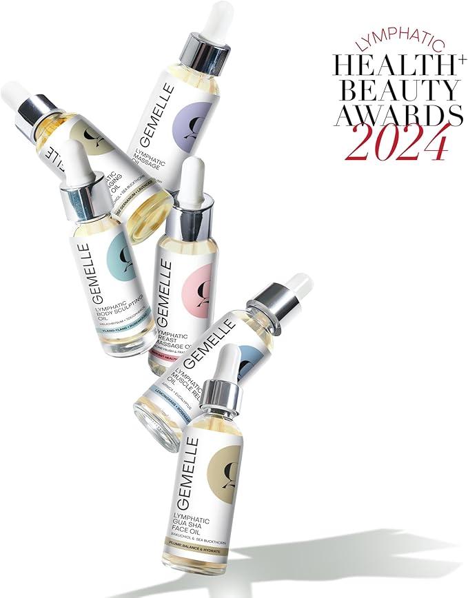 GEMELLE Lymphatic Muscle Relief Oil | 6X Award Winner | Natural Arnica Massage Oil, Sore Muscles, Back & Neck Pain Relief Oil, Lymphatic Drainage | Paraben-Free, Luxury Natural Skin Care | 30ml