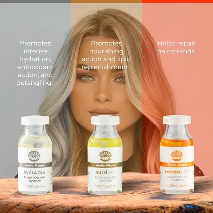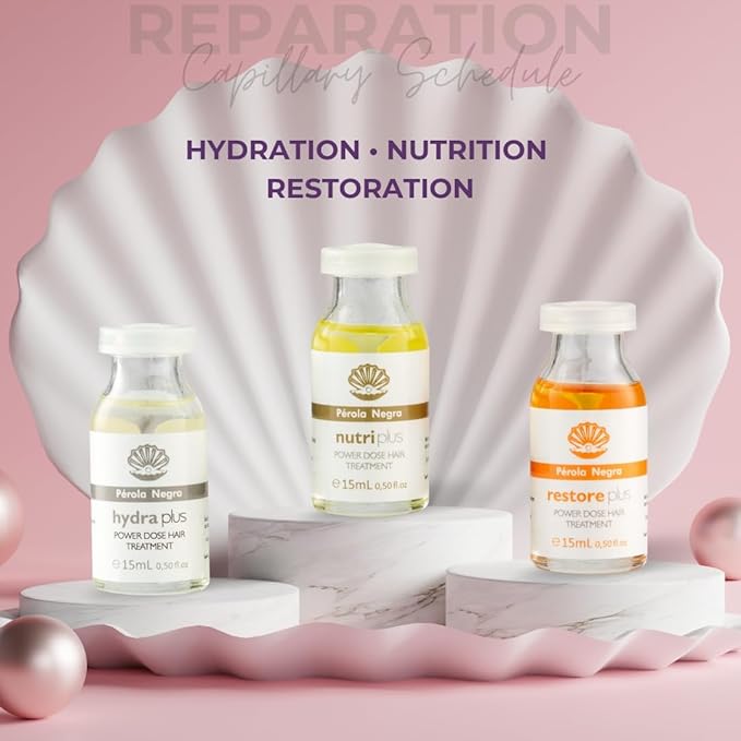 - The Pérola Negra Box contains 3 ampoules: (1 Hydration Ampoule, 1 Nutrition Ampoule and 1 Restoration Ampoule)