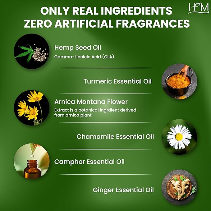 - NATURAL SOOTHING BLEND: Crafted with a harmonious blend of natural ingredients such as Turmeric Ginger, Arnica, and Camphor, known for their calming properties, our oil provides a gentle and natural way to soothe discomfort.