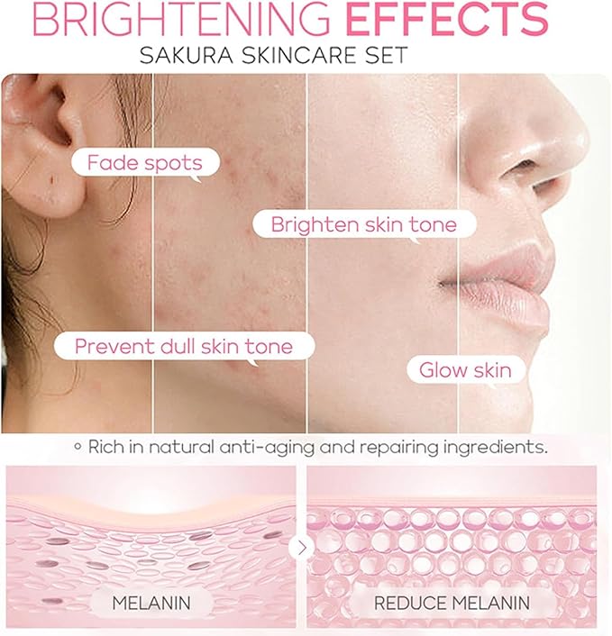 - ★【Hydrating and Moisturizing】: Sakura Skin Care Set is rich in sakura/ cherry blossom essence, making the skin moist and soft.Sakura serum has the effects of shrinking pores, balancing the skin secretion of water and oil, hydrating and moisturizing dry skin, leaving you with a better glow