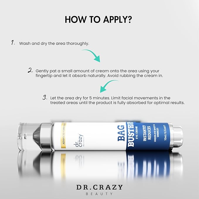 - IMPORTANT INFORMATION – Please follow the directions for applying. Do not rub the cream in order to absorb it. Simply pat with the tip of your finger on the area and wait until it absorbs naturally. Limit facial movements in treated areas until it absorbs for optimal results. A true instant under eye tightener, and undereye wrinkle repair that works within minutes.Made in Australia and sourced globally.