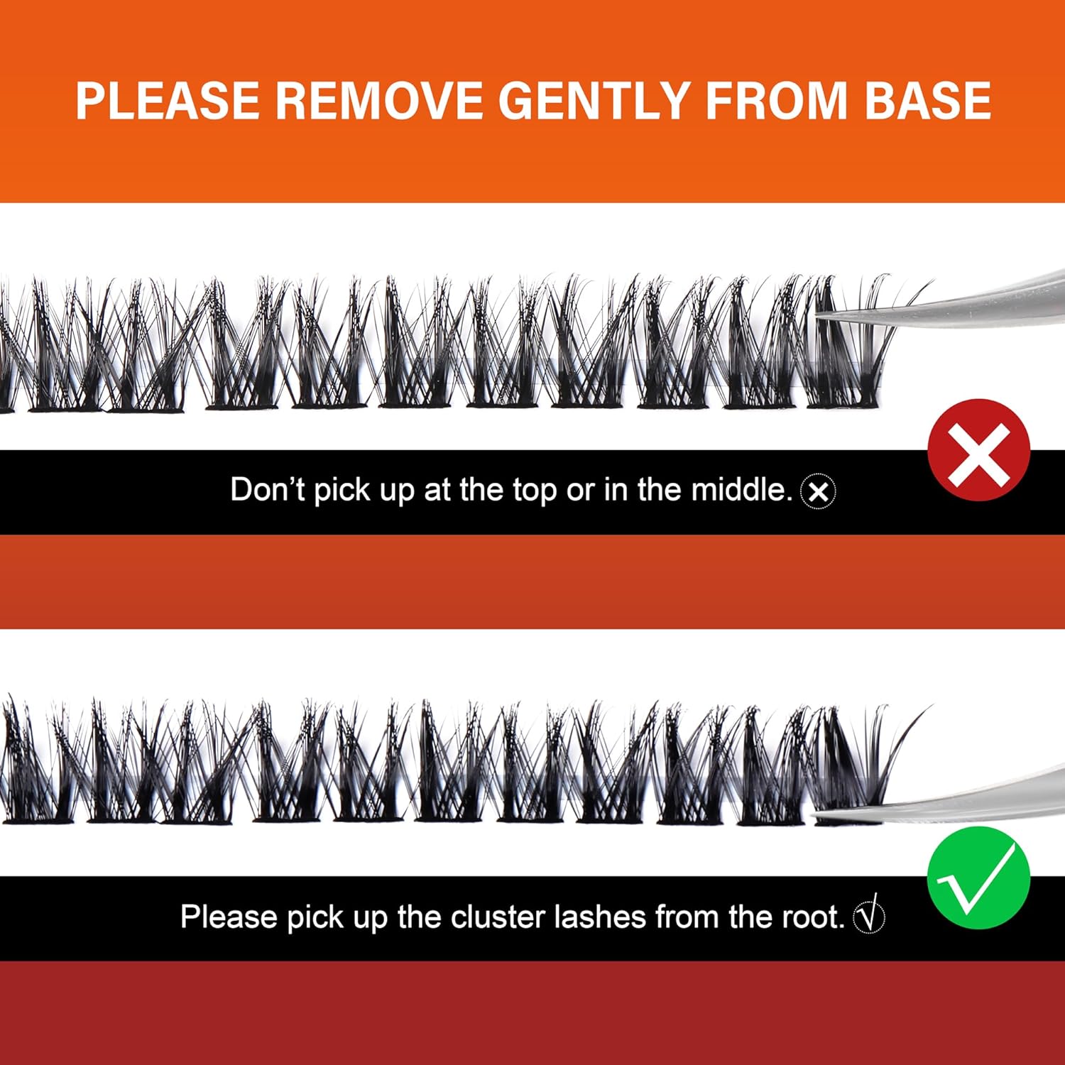 - ๐๐ฎ๐๐ ๐๐ผ W๐ฒ๐ฎ๐ฟ L๐ฎ๐๐ต๐ฒ๐ C๐น๐๐๐๐ฒ๐ฟ Apply a thin layer of eyelash adhesive to the root of natural eyelashes, gently place the eyelash cluster under the bottom of natural lashes using eyelash adhesive, and then apply a thin layer of eyelash sealant to fix the lash cluster in place and eliminate any residue