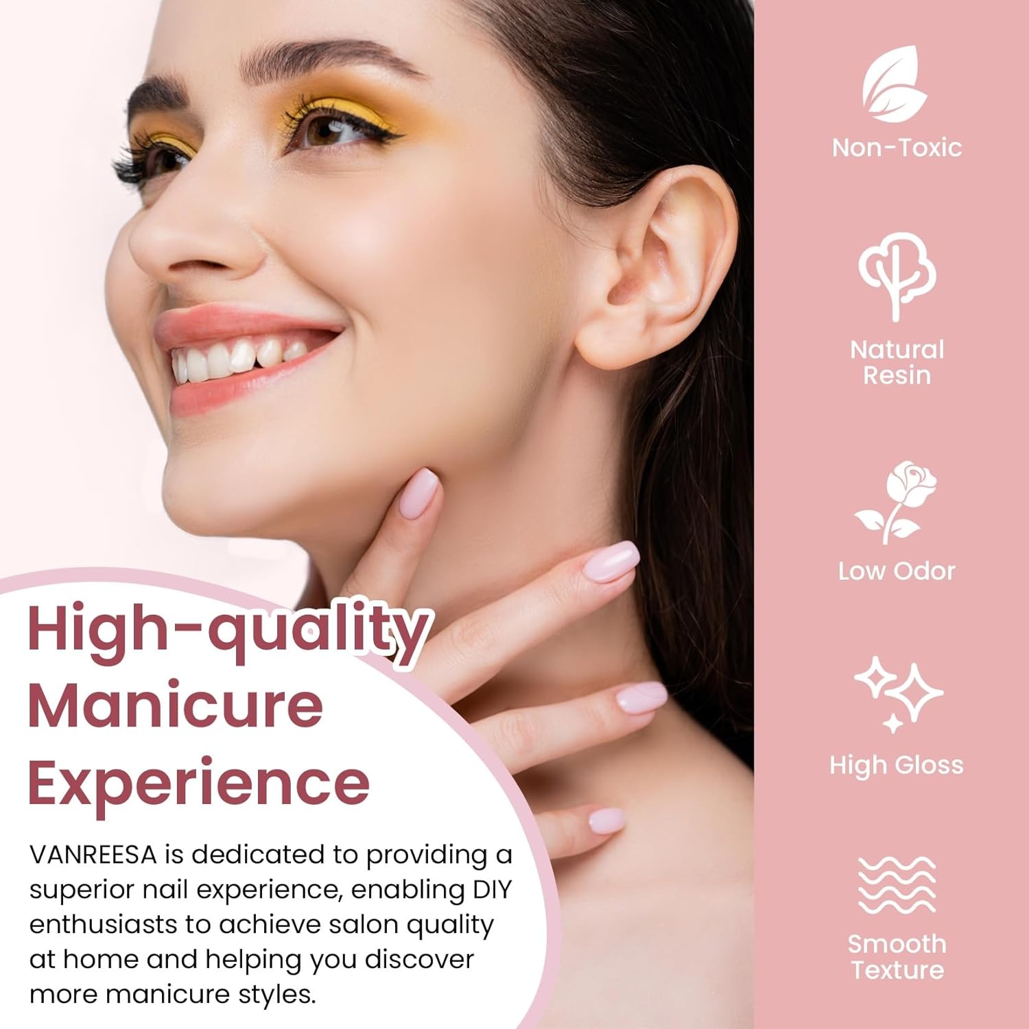 - 【Healthy & Long Lasting】 VANREESA gel nail polish ingredients are made from natural resins that are safe, non-toxic and low-odor, so you can use them with confidence. VANREESA gel nail polish is silky smooth, brightly colored and easy to apply, so even beginners can master its use. Prepare well before you start (shaping, buffing, cleaning) and follow the proper steps in the manicure instructions and your nail art will last for 21+ days!
