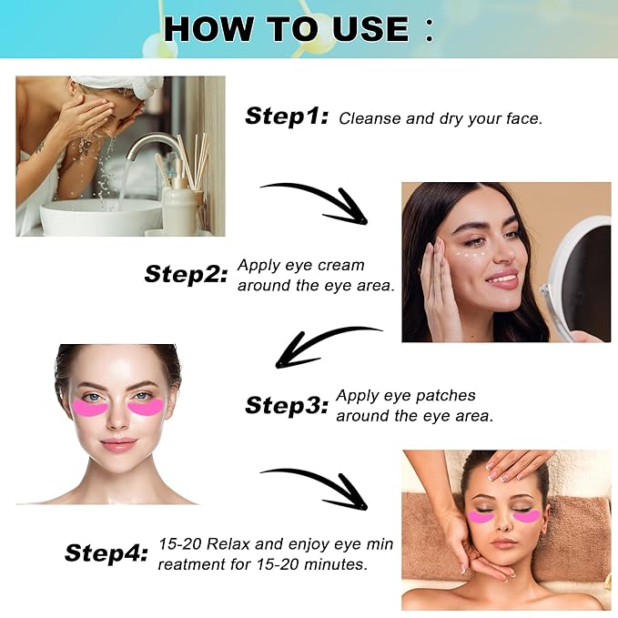 - How to Use -- Apply your favorite eye serum or cream to under eye area. Use the eye roller massager to soothe the eye area. Allow 10 seconds for product to get tacky. Then place your under eye patches.Use the eye roller massager to soothe the patches again to reduce puffiness, and enhance absorption.