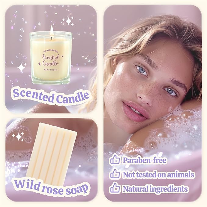 - Deluxe 8-Piece Gift Set: Treat her to a relaxing at-home spa experience with this 8-piece set, featuring body butter, soap, bath salts, a scented candle, a tumbler, cozy socks; Infused with soothing lavender and natural ingredients for ultimate pampering