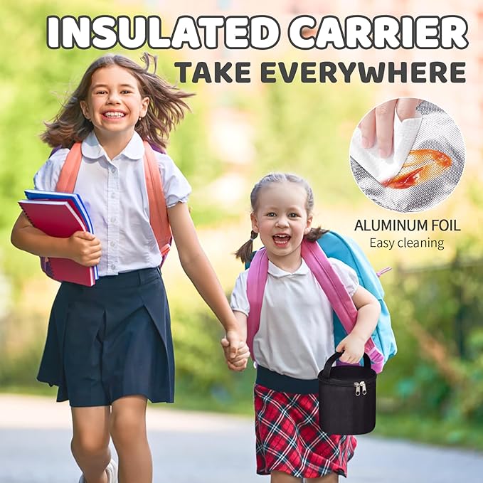 - UPGRADED SEALED RING & WATERPROOF LUNCH BAG: Double-layer silicone seal ring design ensures your thermo food containers are 360° LEAK-PROOF and lock in food freshness, and comes with a handy insulated bag, not only protects food jar during commute, but also extend food warm until your child opens it and eat with included food-grade folding spoon.