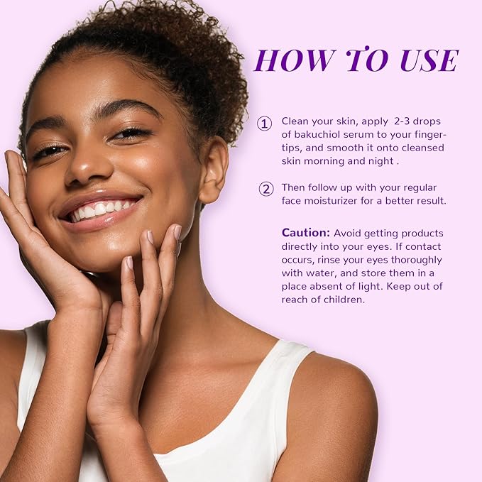 - Improving Skin Texture--Are you eager to have smooth skin? With regular use, our Bakuchiol serum can achieve a more even and radiant complexion. It helps refine skin texture, minimizing the appearance of pores and creating a more even skin tone.