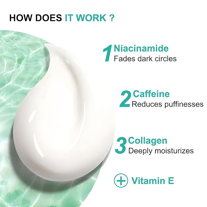 - Deep Moisturization: Infused with collagen ingredients, our eye cream deeply moisturizes the delicate skin around the eyes, keeping it nourished and supple