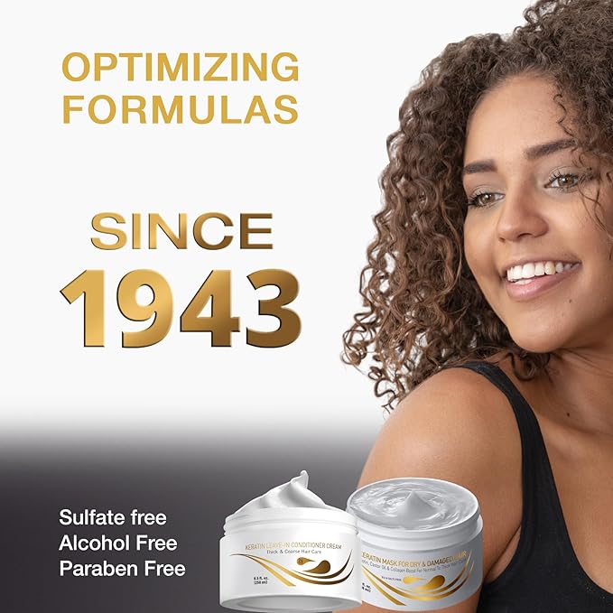 Vitamins Keratin Leave-In Conditioner and Hair Mask Kit - No Rinse Moisturizing Cream and Repair Treatment for Dry, Damaged, Curly, Wavy, Straight, Thick & Coarse Hair - Pro Salon Hair Care