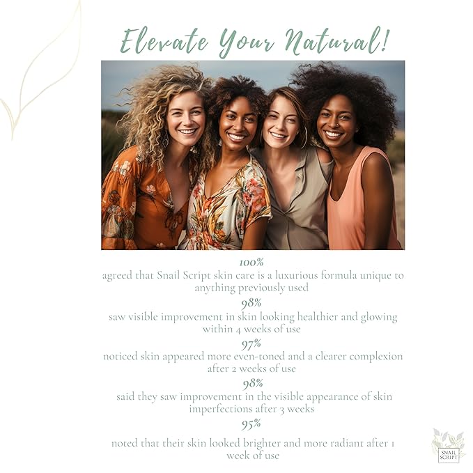 - Suitable for all skin types, snail script is 100% natural, zero mineral oils, comedogenic without preservatives or synthetics, Dermatologist approved and the preferred natural skincare line. Feel confident when using our moisturizing, skin purifying clay snail mask and perfect snail mucin serum travel size.