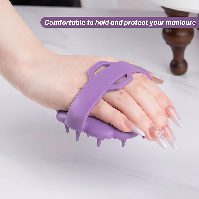 - PROTECT YOUR NAILS: the design of the handle band, you can put your fingers into the grip, grip more firmly, do not need to worry about slipping when massaging the scalp, to protect you to do a beautiful manicure!
