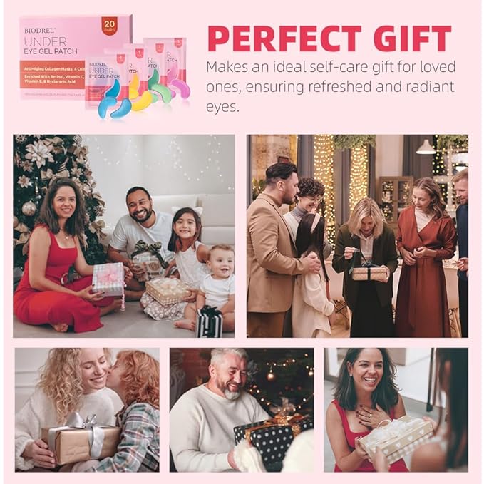 BIODREL- Under Eye Patches (20 Pairs) for Dark Circles, Puffy Eyes, Wrinkles, Eye Bags Treatment - Collagen Mask for Men & Women with Retinol, Vitamin C - Cooling Eye Gel Pads - Puffiness Care Masks