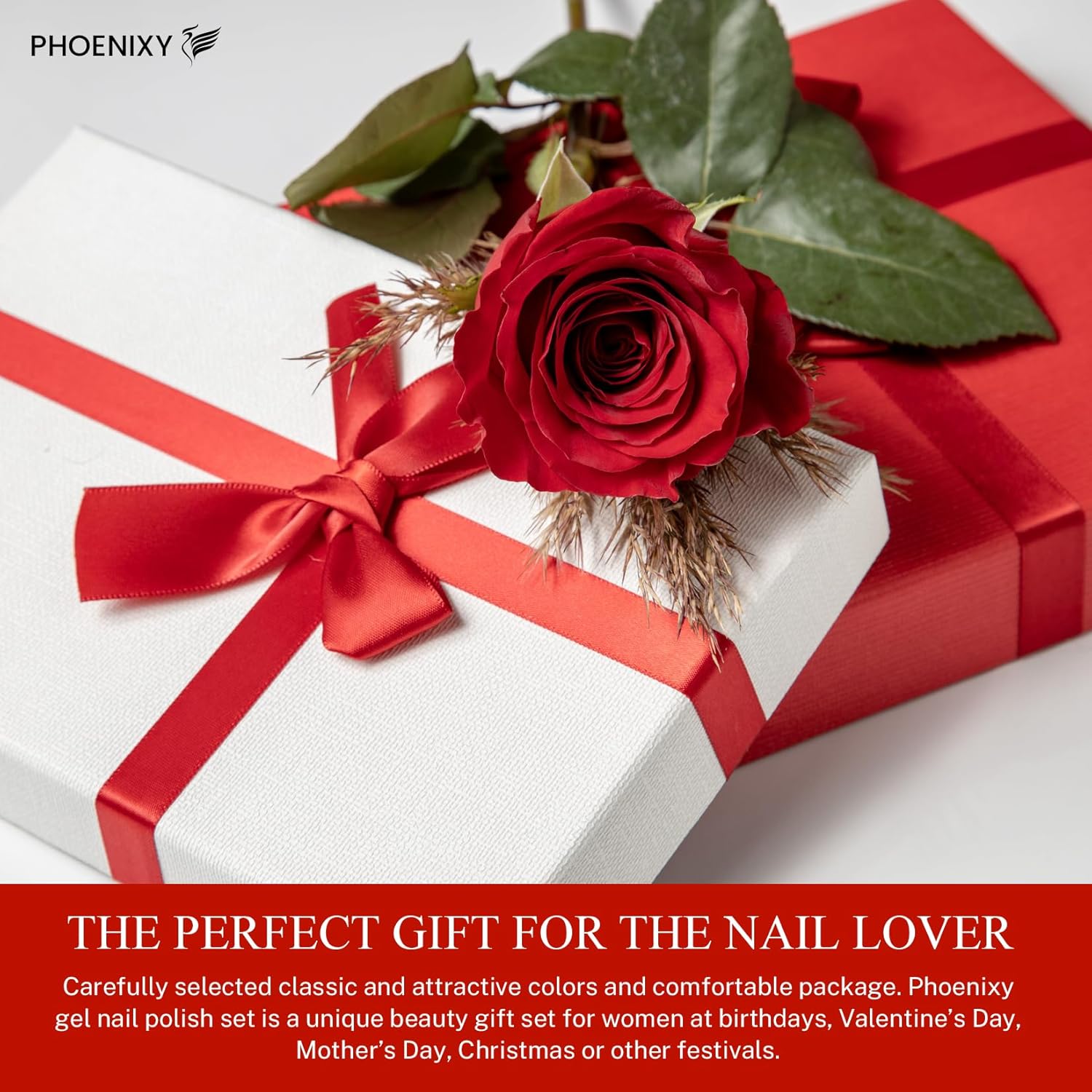 - [High Quality & Long Lasting]: Made of natural resin, Phoenixy gel nail polish contains botanical ingredients and lowest smell, harmless to skins or nails. The higher quality promises better adhesion and gloss, smooth application, and strong color-locking ability. The nail polish can last more than 4 weeks with proper application (keep your nails clean with file and buffer before applying base coat).