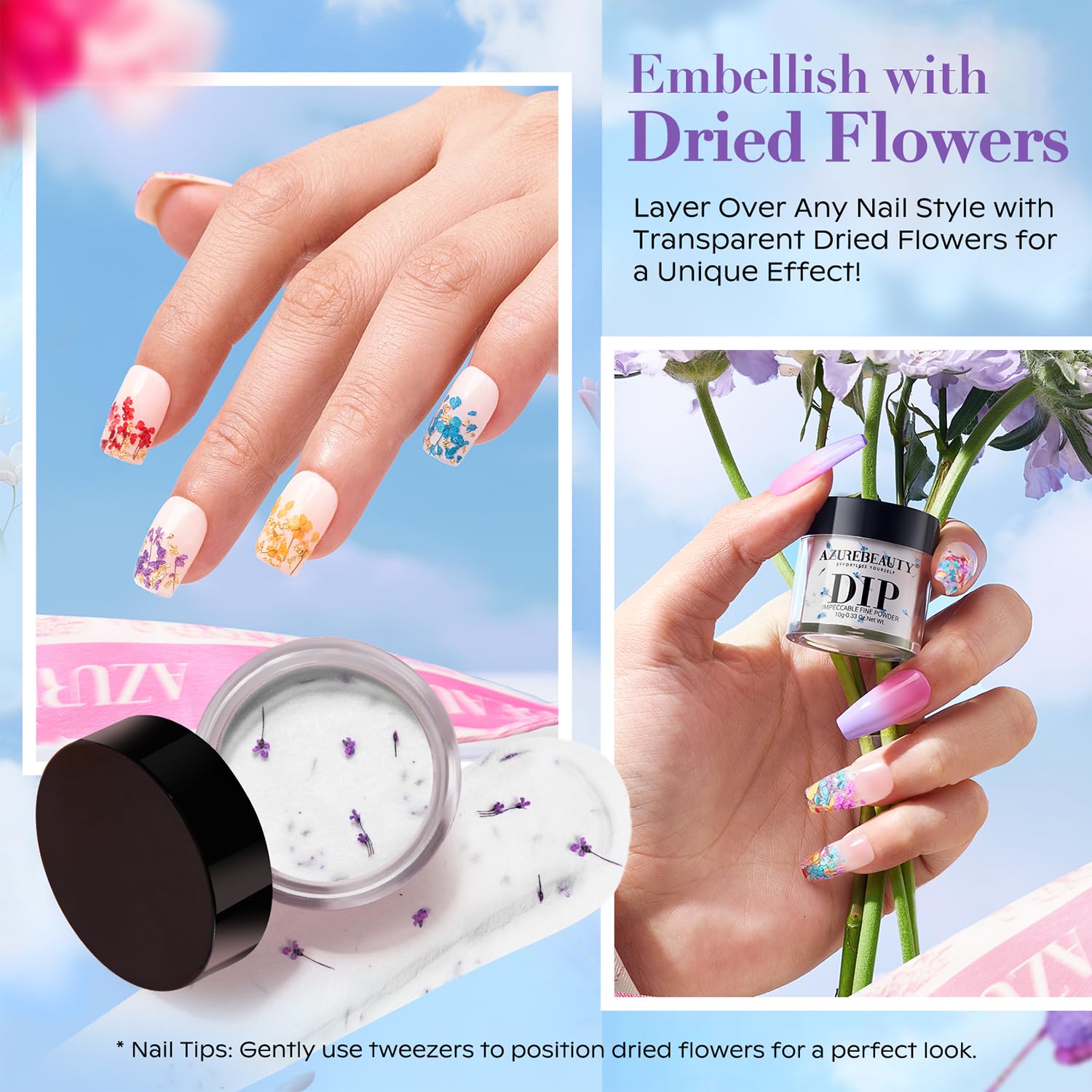AZUREBEAUTY Dip Powder Nail Transparent Crystal Dried Flower Set, Blue Green Purple Pink Yellow 6 Colors Natural Real Clear Dipping Powder Starter Kit Nail Art Manicure Salon, No Need Nail Lamp Cured