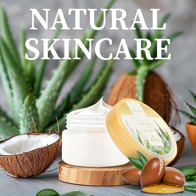 - NATURAL SKINCARE: Our Aloe Vera After Sun Body Butter is crafted with a natural formula enriched with shea butter, coconut oil, jojoba seed oil and aloe vera extract. It's not just a moisturizer, it's your skin's good friend.