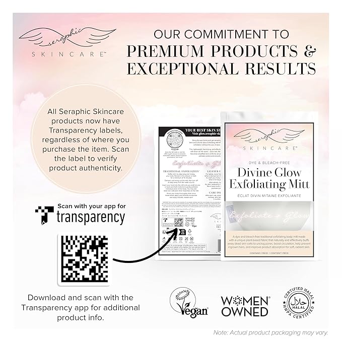 - Indulge in an At-Home Spa Experience – At Seraphic Skincare, we’re committed to offering premium exfoliating products at affordable prices. We invite you to immerse yourself in the luxurious experience of exfoliation and self-care at home by adding our Korean-style exfoliating mitts to your beauty routine. Get that glow you’ve been dreaming about!