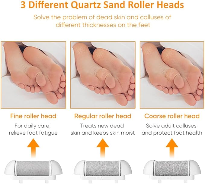 - 💯 3 Quartz Roller Heads 💯 3 varying roller heads: Light Callus Roller suitable for daily foot care, Regular Callus Roller suitable for non serious dead skin and calluses. Heavy Callus Roller suit for stubborn dead skin, You can choose suitable roller head according to the situation of your foot.