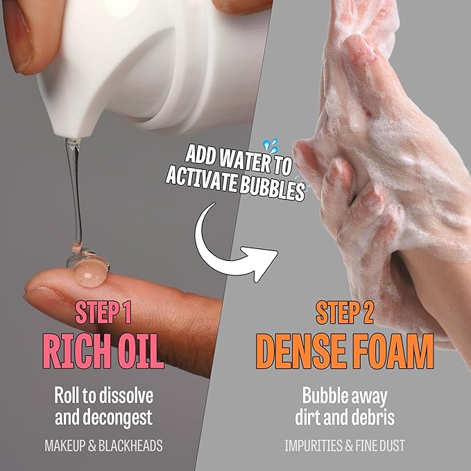 - DOUBLE-DUTY CLEANSING.Experience the power of oil-to-foam cleansing with our facial cleanser duo. Plant oils work to dissolve makeup and impurities, while Botanical extracts and Vitamins nourish your skin, leaving it feeling clean and refreshed.