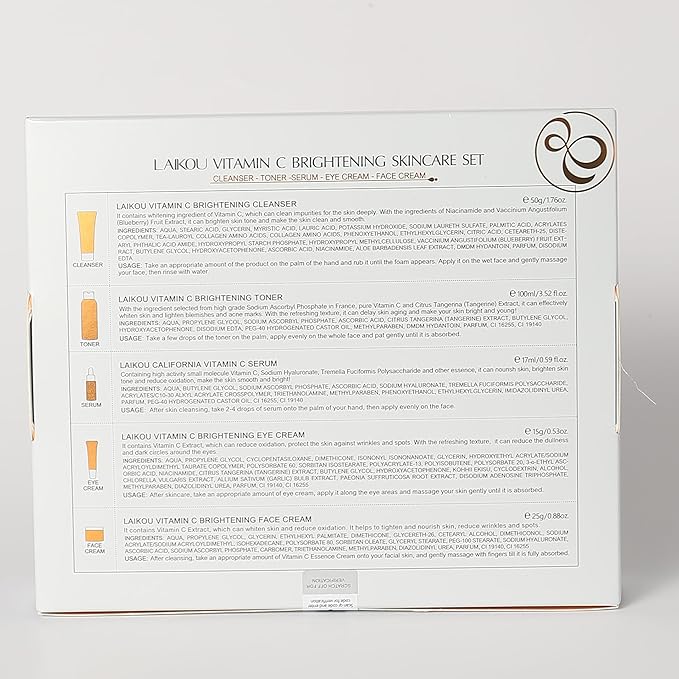 - 【Vitamin C Skin Care Sets & Kits】This skincare set contains facial Cleanser,Toner,Serum,Eye Serum,This vitamin C skin care set can replenish dry skin with water, reduce dry and moisturizing skin.