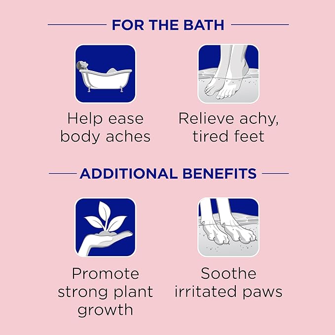 - MULTIPURPOSE SOLUTION: Use as a regular epsom salt in the bath, for achy feet, sore pet paws, gardening and more