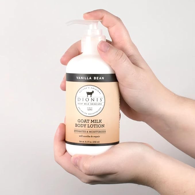 - The Dionis goat Milk Skincare Lotion is rich and creamy. With regular use it’s designed to ease rough skin, making it smooth and silky. It also does not leave a greasy residue like many lotions, so you can apply it right before putting on your favorite sweater.
