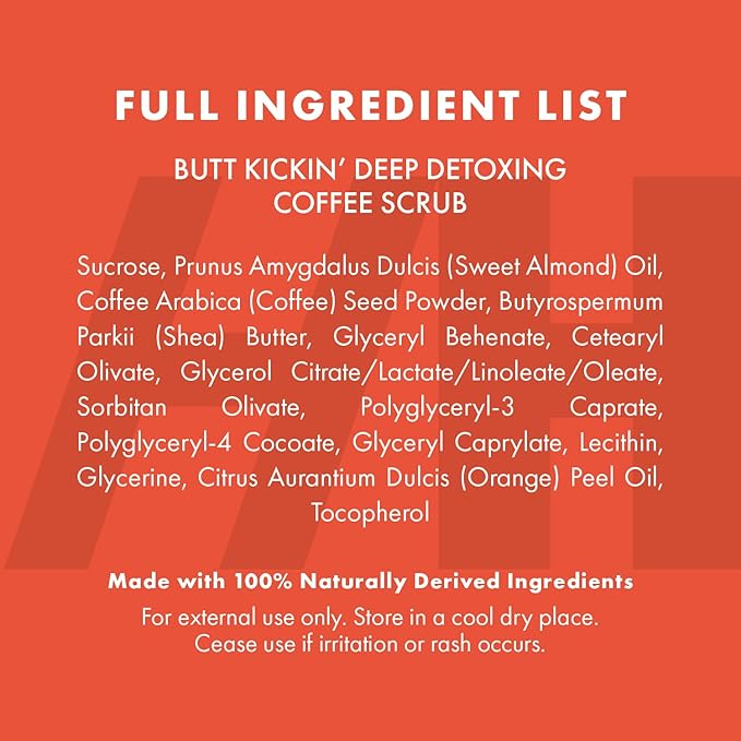 • HANDMADE HEROES BUTT KICKIN' DEEP DETOXING COFFEE SCRUB an ultra nourishing and detoxing body scrub, hand scrub and foot scrub. Tough on cellulite but kind on the skin