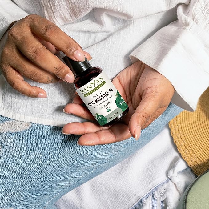 Banyan Botanicals Pitta Massage Oil – Organic Massage Oil Infused with Ayurvedic Herbs – with Gotu Kola and Guduchi (Tinospora cordifolia) – 2 oz. – Non-GMO Sustainably Sourced Abhyanga Massage Oil