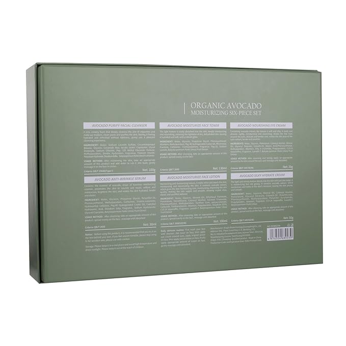 - Avocado Face Care Set: The set contains avocado extract with a light, non-greasy texture. Effectively anti-aging, removes impurities and releases skin vitality. It is easily absorbed and provide nourishment and moisturize the skin