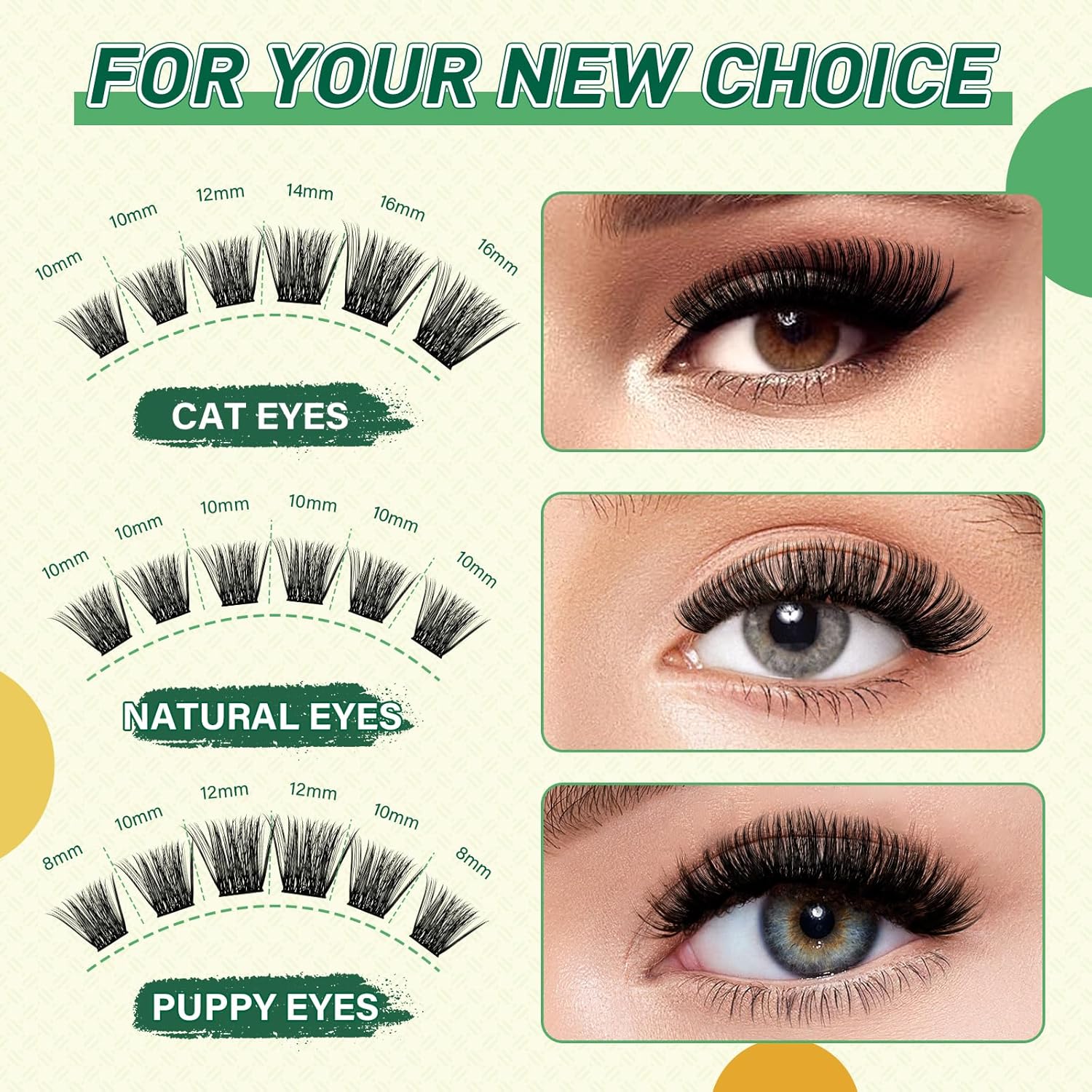 - 【144pcs High Quality Cluster Lashes】The simulated eyelash material is more realistic and will not feel plastic, comfortable and non-irritating on the eyes, allowing you to easily maintain a perfect makeup all day long.