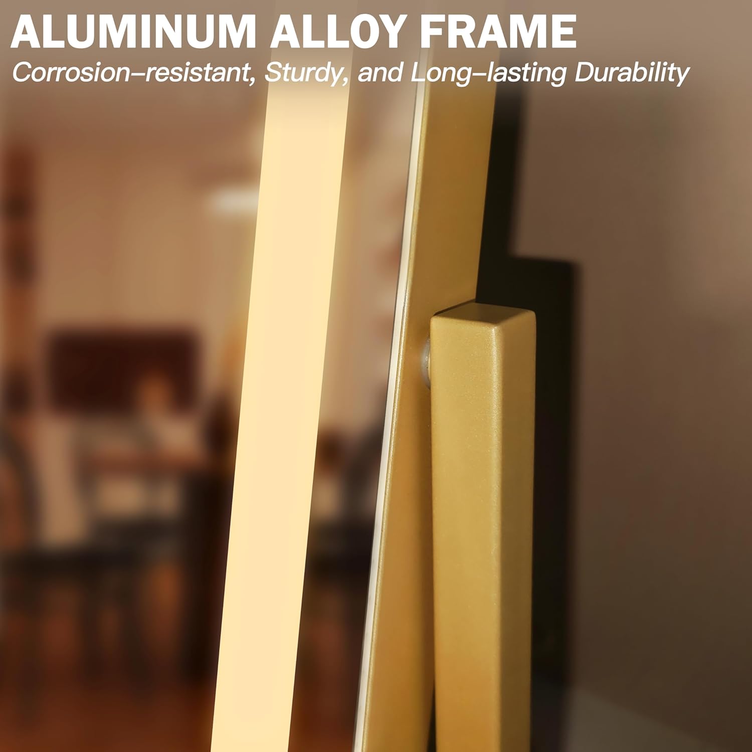- 【Sturdy Construction】 Our makeup vanity mirror is made with a classy and heavy-duty aluminum alloy frame, ensuring both sturdiness and elegance. The large base also features soft and non-slip rubbers, making it stable enough to place the lighted makeup mirror on the table by itself.