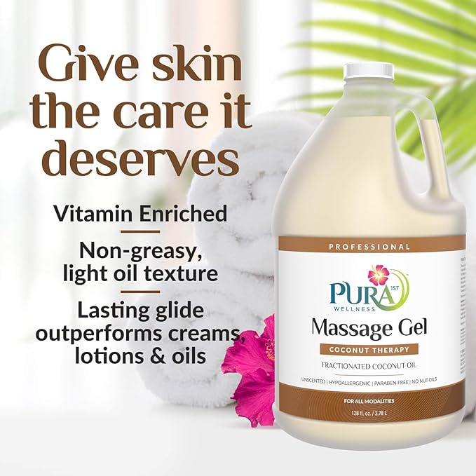 Coconut Therapy Massage Gel, Pura Wellness Massage Gel, Professional Deep Tissue Therapy, Coconut Massage, Massage Gel for Physical Therapy, Unscented Gel for Physical Therapy Recovery, 128oz