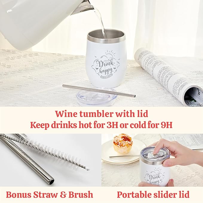 - Deluxe 5 Pcs Birthday gifts for women This Spa Gift Basket has everything a woman needs. It includes hand cream, soap, shower gel, bath sponge, stainless steel wine thermos with lid and straw to sip wine and juice while you enjoy a relaxing SPA