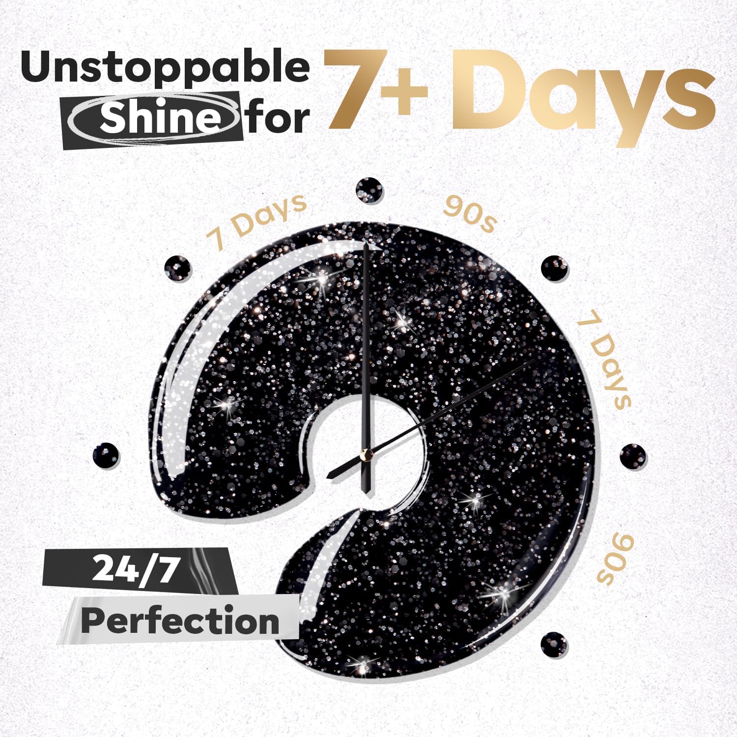 - 7+ Day Long Lasting Manicure Kit: Salon-Gloss finish in 10 minutes with a 150°wide easy-slip brush and its own Formula. Ensuring your manicure stays flawless in 7+ days. Enjoy creating the perfect manicure at home with ease