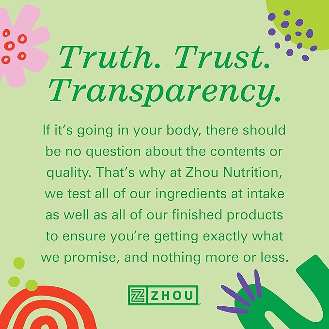 - Based in the Heart of Utah – At Zhou, we use only the highest-quality ingredients in a facility following GMP (good manufacturing practices). Plus, we test everything at our lab in Utah, so you can be confident that you're fueling your body with the very best.