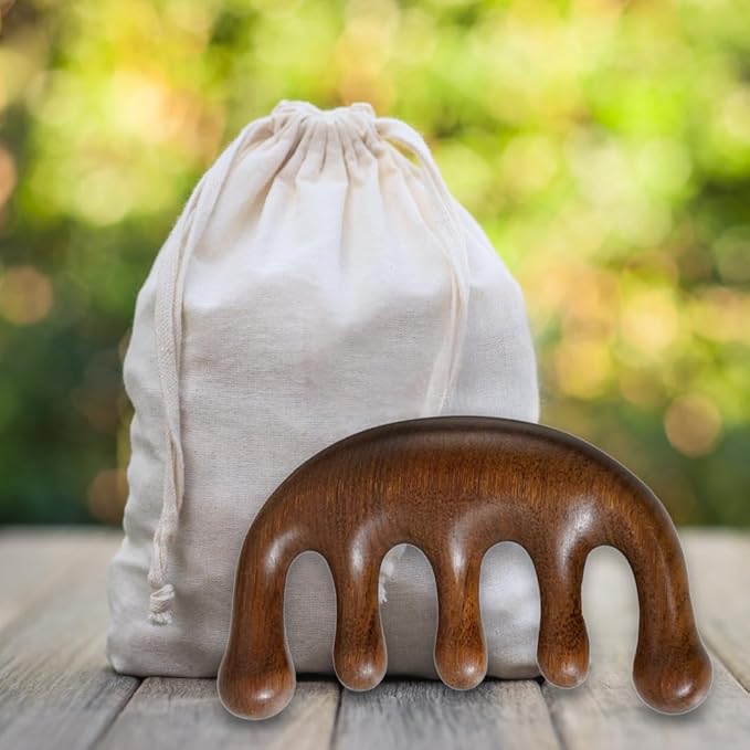 - Round Tooth Massage Comb - The sandalwood wide tooth comb is perfect for head massage or guasha, scalp massager are smooth and round which made it very easy to use and super comfortable. The other side is easy to hold, can use it for head, neck, shoulder, back, hand, arms and other fatigued body area massage.