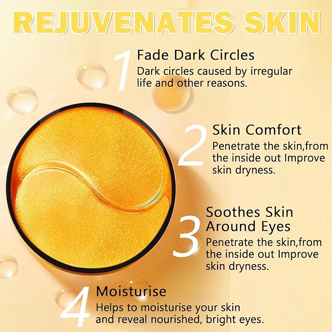 - 【Gold Under Eye Patches】Gold eye patches are rich in a variety of nutritional essences,which can soothe eye skin, relieve fatigue, give the ultimate eye care,quickly treat dark circles,eliminate eye puffiness,and restore the natural beauty of eye skin.