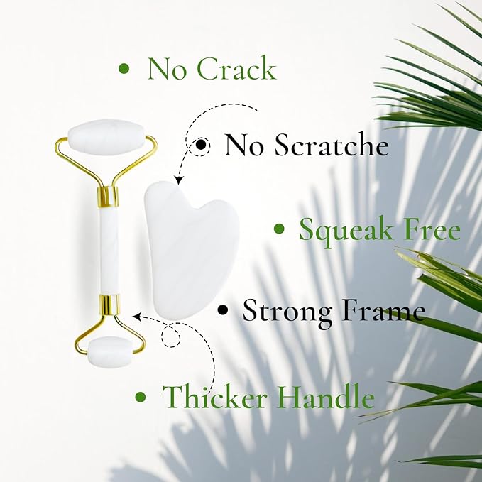 - - Beauty Skin Care Tools Set - Jade facial roller and White quartz Gua Sha stone in the gift box. Roller is ideal for the neck, chin, cheeks, forehead, eyes, nose.You can keep the facial jade roller and Guasha in the fridge.Ice rollers help reduce morning swelling on the skin.