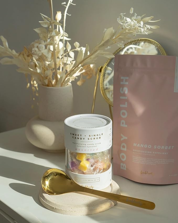 - Easy and Mess-Free – This exfoliating body scrubber includes a gold spoon, so you never have to touch it directly, keeping the scrubs dry and clean for next use. Best applied after shower, scoop just enough to apply to your skin until it's absorbed.