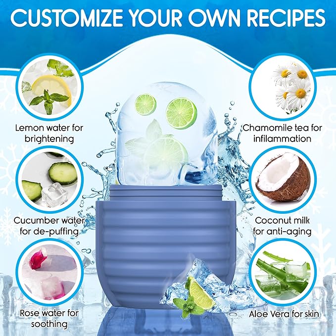 - Customize Preferences - Facial ice roller can enhance the skin care effect as per your creativity and customized formula according to your specific skin needs, such as lemonade for whitening, and coconut for improving skin. Even you can use a juicer to squeeze them into juice, then add water, essential oils, and roses to the ice tray.
