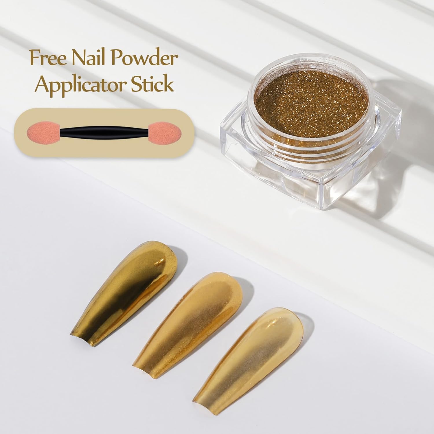 - 【Nail Art Pearl Chrome Powder】:This package contain 2 PCS pearl nail mirror pigment powders. It needs to be used with gel nail polish and no wipe top coat. 1 PCS for gold chrome powder, 1 PCS for silver Chrome nail powder. They can make many different design for your gel nail polish.