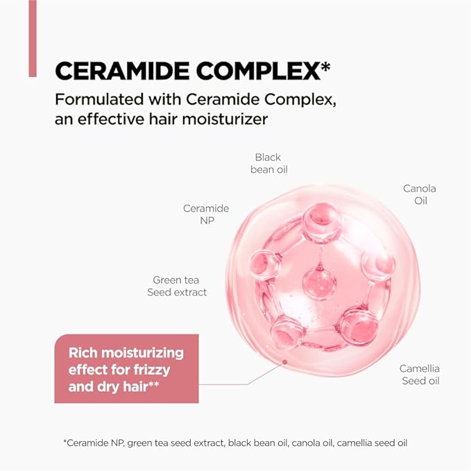 - ·CERAMIDE COMPLEX: Deeply moisturizes frizzy and dry hair, enhancing hair elasticity.