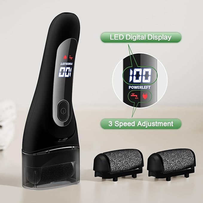 - Personalised Cleansing: This electric foot callus remover has three different types of roller heads with three speeds on a high-performance motor, perfect for hand or other skin treatments as well as for removing thick calluses, dead skin or hard skin. You can personalise your cleaning with this electric foot file according to your individual needs.