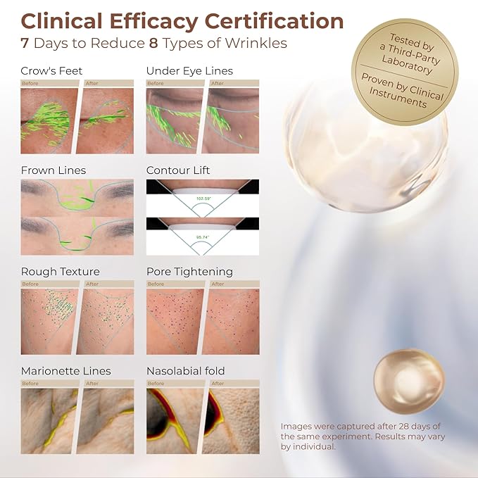 - 7-Day Intensive Wrinkle-Reducing Collagen Cream: This cream combines internal collagen boosting with external support, visibly reducing fine lines in 7 days. Clinically proven to reduce 8 wrinkle types, ideal for sensitive skin. 6-hour redness relief, 143% collagen boost, 13% reduction in smile lines.